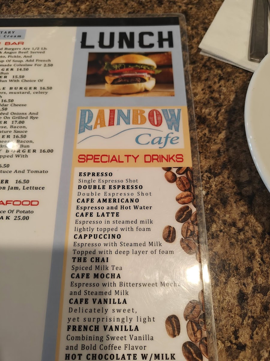 Rainbow Cafe Menu